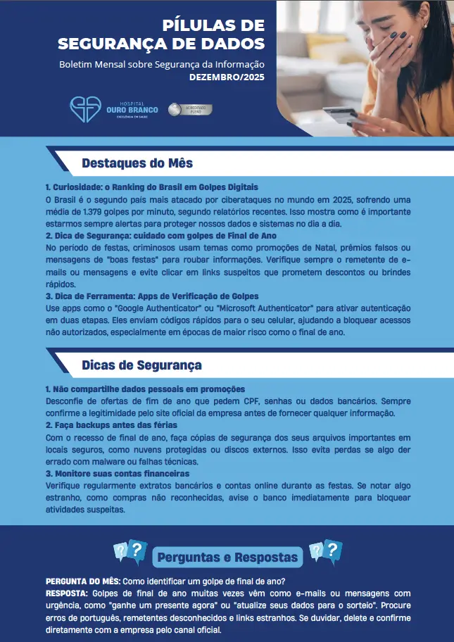 O Comitê de Proteção de Dados do Hospital Ouro Branco tem a função de apoiar a segurança e a privacidade das informações e dos dados sensíveis que a instituição manuseia de pacientes, familiares, colaboradores, médicos, prestadores de serviços, fornecedores e demais públicos envolvidos.