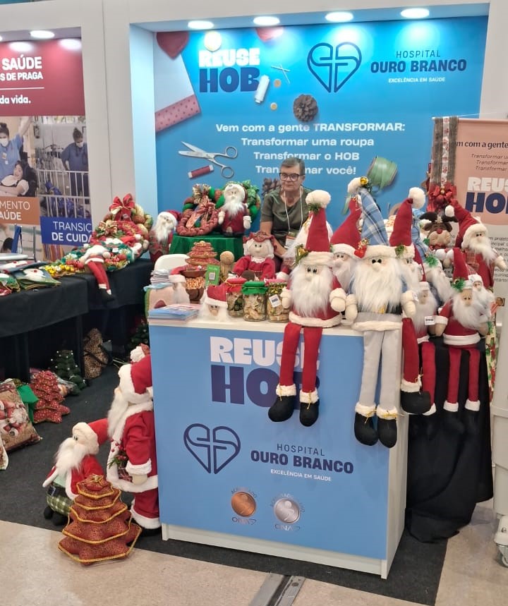 Durante a feira, o Reuse HOB também teve um espaço exclusivo, onde foram comercializados diversos itens natalinos criados pelos voluntários do projeto que tem como objetivo reverter os valores arrecadados em melhorias no hospital, além de estimular o consumo consciente e a sustentabilidade.